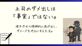 HSP・繊細さんの心得 【理不尽な上司から逃げる術】苦笑いせずに「事実」と「主観」を分け、精神的ダメージをゼロにする仕組み 「動けない」「頑張れない」と悩むあなたへ。上司の理不尽は主観です。HSP気質でも疲れないよう、事実と主観を分けて職場のストレスとダイエットを楽に攻略する理屈を解説します 2025.11.09 HSP・繊細さんの心得上司と評価の愚痴(No.2対策)