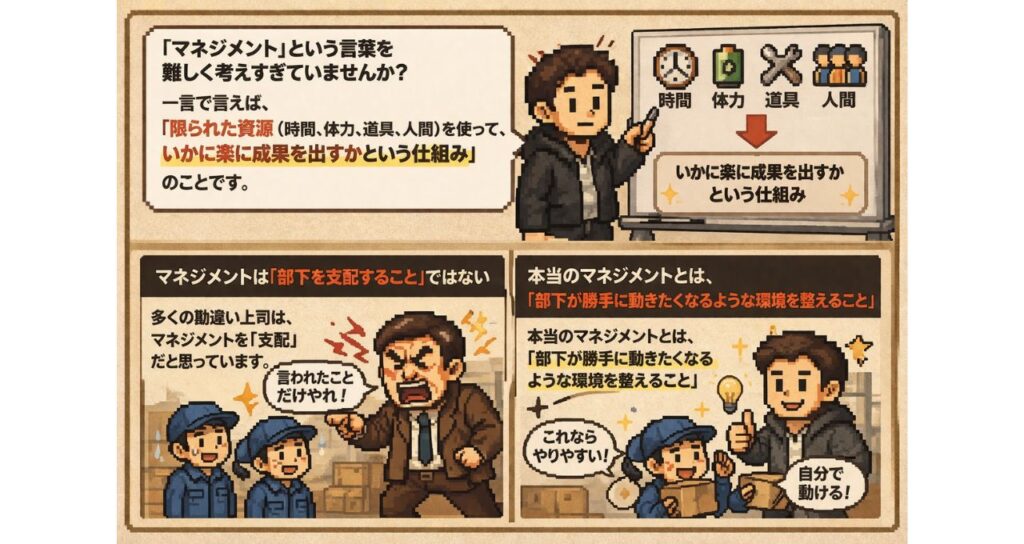 マネジメントの本質は「限られた資源(時間・人・金)でいかに成果を出すか」にあります。